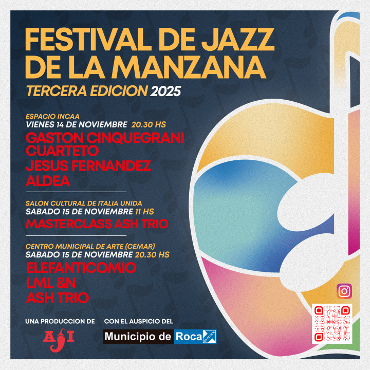 Llega noviembre y como sucede desde hace tres años, en Roca suena jazz: se activa el Festival de la Manzana.