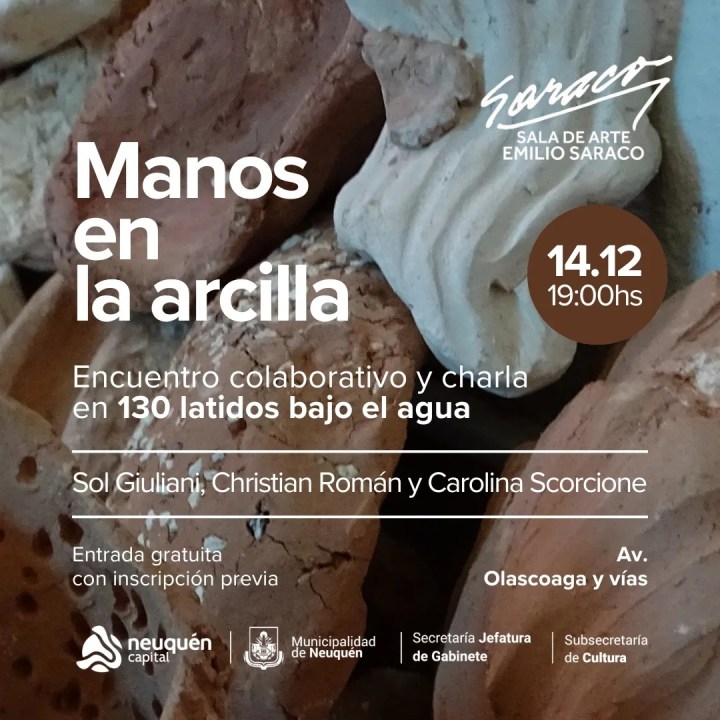 El sábado 14 de diciembre a las 19 hs se realizará la acción performática colaborativa en la que, a través de la arcilla, se podrá ser parte del proceso artístico de la exhibición “130 latidos, bajo el agua”.