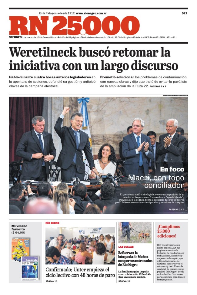 Hoy te entregamos un diario especial. En sus páginas encontrarás historias de productores y trabajadores, hombres y mujeres de la región, que están relacionadas de distintas maneras con el número 25.000. Esa es la cantidad de ediciones que publicó “Río Negro” desde su fundación. Otra razón para sentirnos orgullosos y festejar juntos.