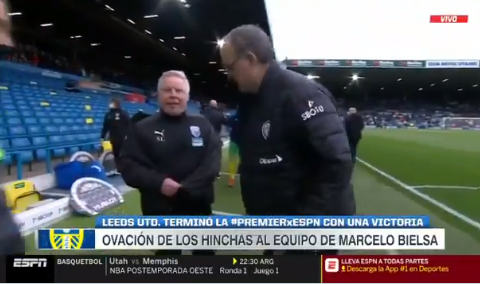 Como suelen hacer los futbolistas con las camisetas- una vez terminado el partido- un integrante del cuerpo técnico del West Bromwich se acercó a Bielsa y le pidió cambiar la campera.