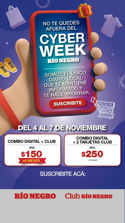 Finalizó una nueva edición del Cyber Monday. Sin embargo RÍO NEGRO se suma al Cyber Week y extiende sus atractivas promociones. ¿Por qué? Porque somos el único diario local que te informa y te hace ahorrar.