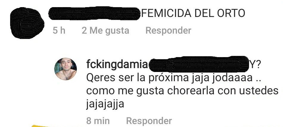 En uno de los comentarios a sus publicaciones en Instagram, una mujer le dijo «femicida» y él le contestó «Y? querés ser la próxima?».