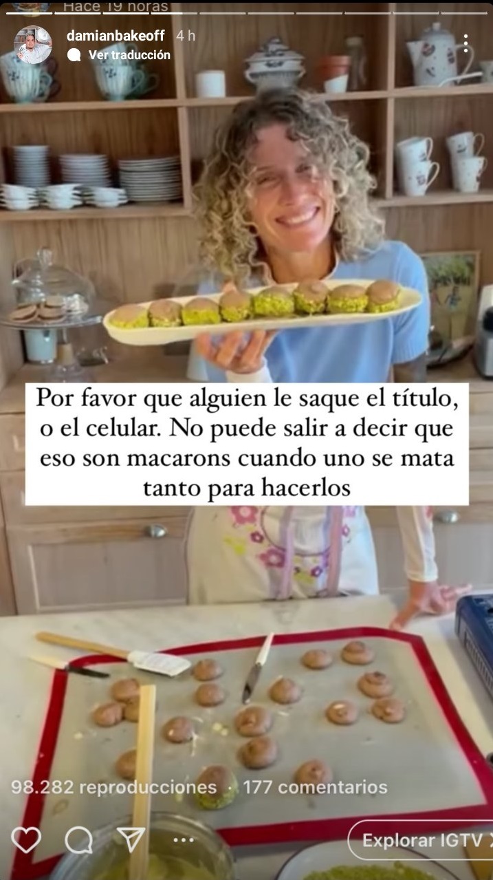 «Por favor, que alguien le saque el título o el celular. No puede salir a decir que esos son macarons cuando uno se mata tanto para hacerlos», publicó el campeón sobre la receta de Maru.
