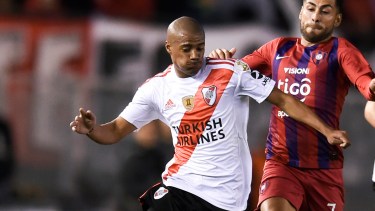 El volante de River Nicolás De La Cruz regresó este mediodía al hotel donde se concentra el plantel en Asunción, para el partido de mañana con Cerro Porteño por los cuartos de final de la Copa Libertadores, tras presentarse ante la Justicia de Paraguay por la agresión a un oficial de policía ocurrida hace tres años.