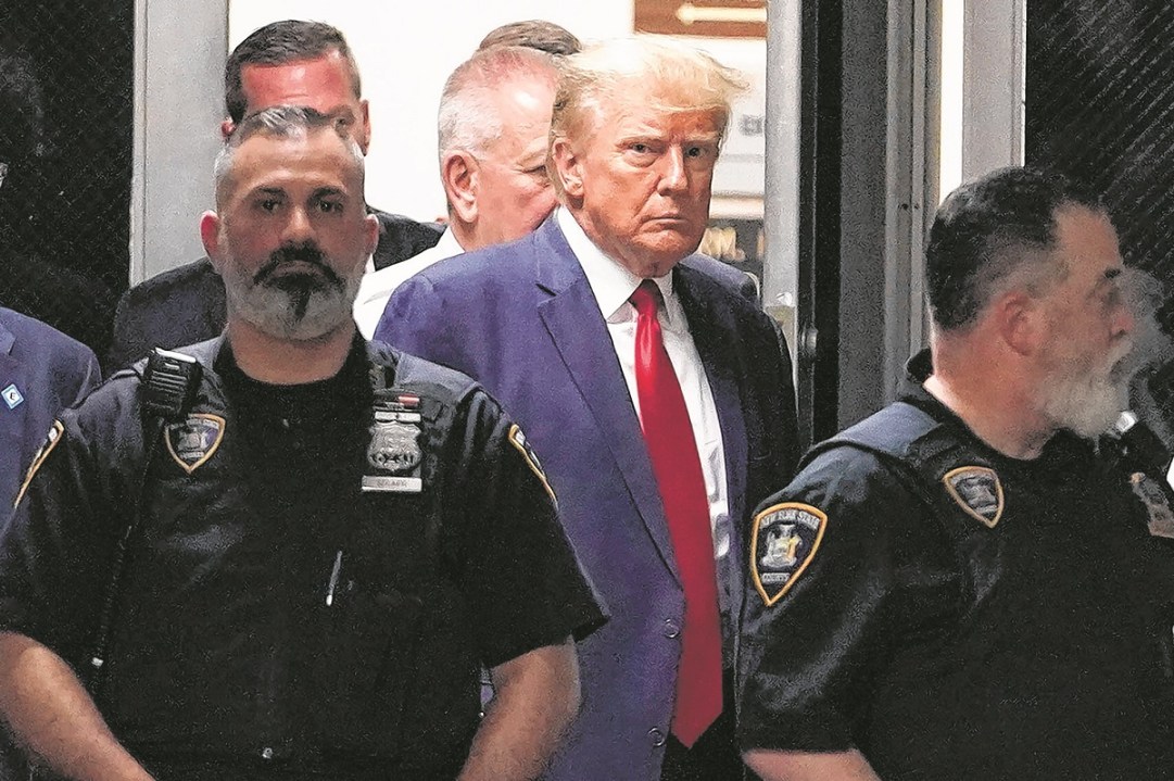 El expresidente Donald Trump llega a un tribunal de Nueva York el martes 4 de abril de 2023 para escuchar cargos relacionados con la falsificación de expedientes comerciales en una investigación de pagos secretos a cambio de silencio, con lo que se volvió el primer expresidente norteamericano en ser acusado de un delito. (AP Foto/Mary Altaffer)