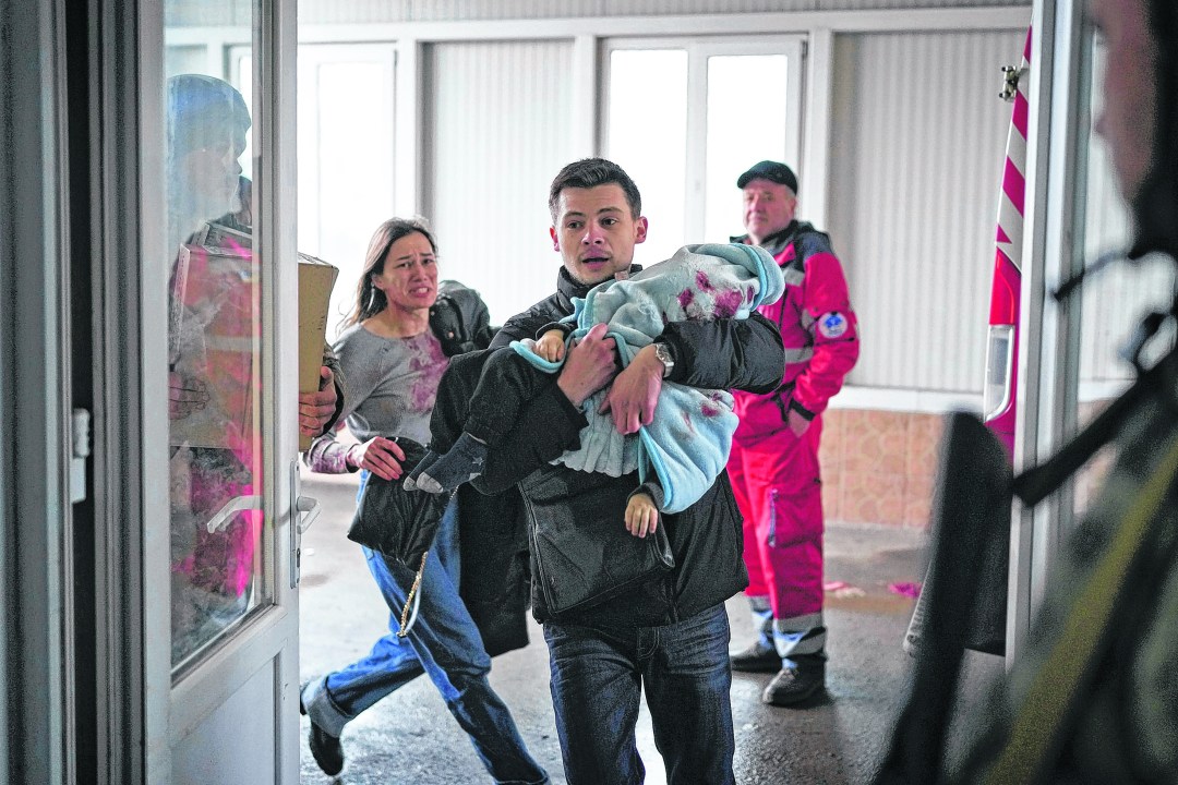 Para el 9 de marzo, el sonido de un avión de combate ruso bastaba para que la gente saliese corriendo en busca de amparo. Los jets surcaban el cielo y esta vez acabaron con una maternidad. Dejaron una fosa del equivalente a dos pisos en el patio. Rescatistas sacaron a una mujer embarazada de entre los escombros mientras caía una leve nevada y ella se frotaba la panza, con el rostro pálido y la cabeza volteada hacia un costado, sin moverse. El bebé se moría adentro suyo y ella lo sabía, según los médicos.