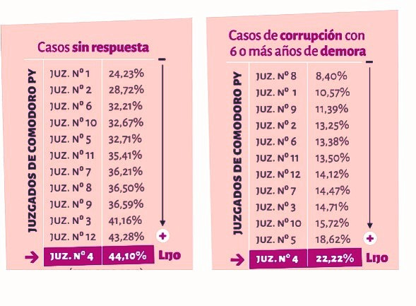 R: Lo de Lijo tal vez es lo más escandaloso. Como juez federal de primera instancia tiene a su cargo investigar delitos graves de corrupción y de criminalidad económica de alto impacto, y se ha caracterizado por su ineficacia. Es el juez que menos respuesta le ha dado a los casos que le ingresan, no sólo por que tiene la mayor cantidad de demoras en causas de corrupción, sino que lo ha convertido en un mecanismo sistemático. La sospecha es que es un juez especializado en congelar las causas y moverlas de acuerdo a los ritmos políticos o de intereses de ciertos sectores de poder. Con estos antecedentes jamás podría llegar a la corte
