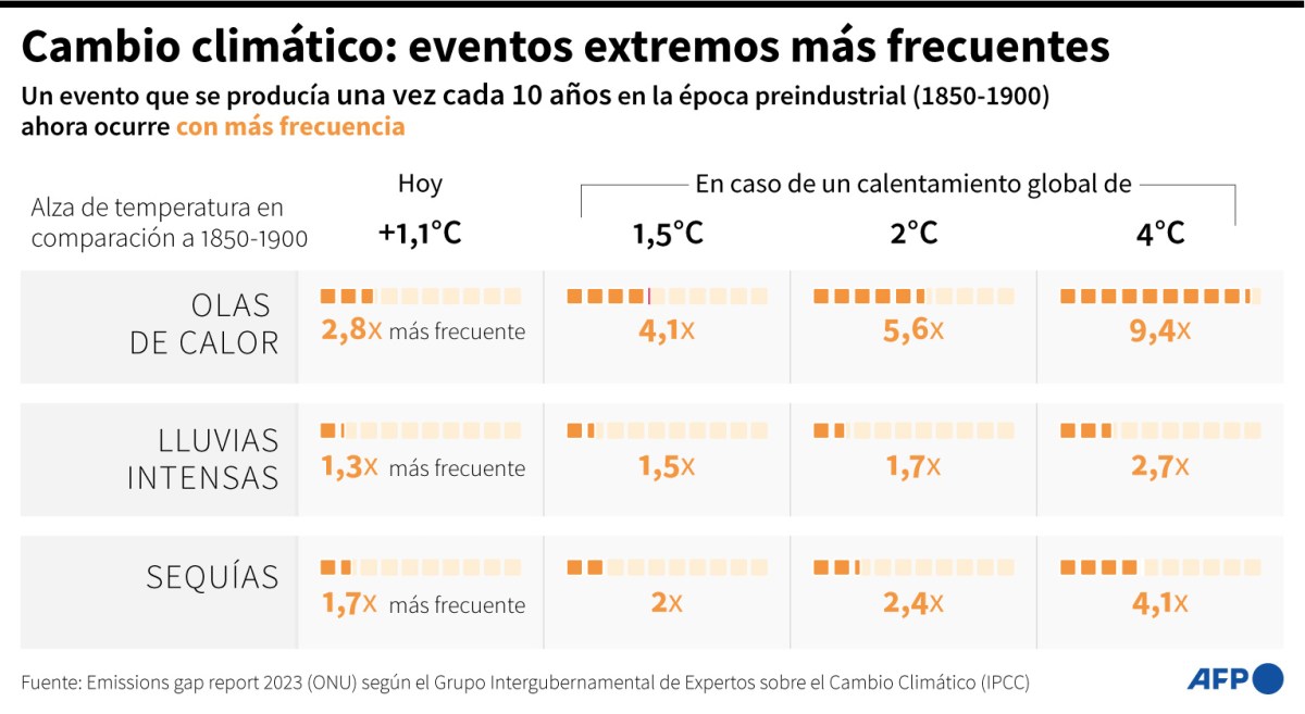 El fenómeno climático cíclico de El Niño, que tiene lugar en el Pacífico, reforzó el aumento de las temperaturas en 2023, aunque causó menos “anomalías” en lo que va de 2023 que en el período de 2015-2016. Sin embargo, aún no alcanzó su punto máximo. En noviembre de 2023, la temperatura en la superficie de los océanos también fue la más elevada para esta época del año, 0,25 °C por encima del récord anterior, en noviembre de 2015.