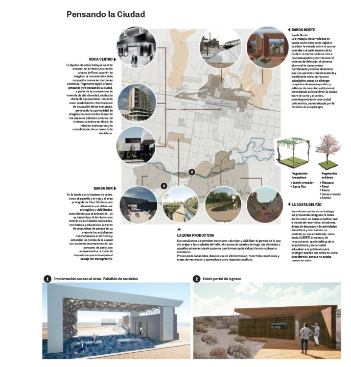 Estudiantes de arquitectura de la Universidad de Río Negro tomaron el desafío de proyectar una ciudad más equitativa, integrada y resiliente al cambio climático. En 6 años, elaboraron unos 120 proyectos de intervención en el ejido. Estos son solo algunos.
