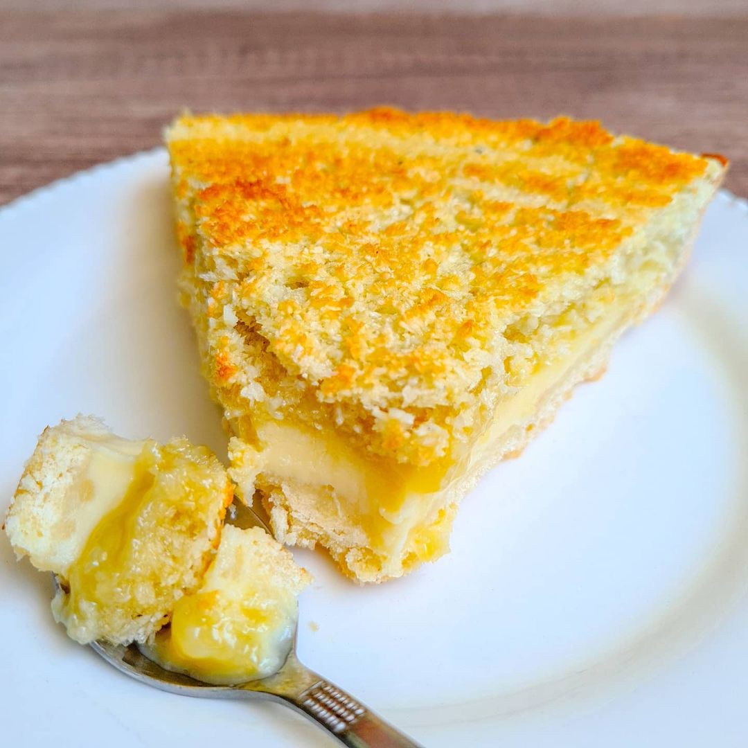 Para la cubierta de coco, hidratar el coco con la leche de coco. Agregar azúcar. Batir con un tenedor los huevos y agregar a la preparación anterior. Tiene que quedar una pasta húmeda. Una vez que el relleno se cocinó y está firme, agregar la cubierta de coco y cocinar por 20 minutos más.
