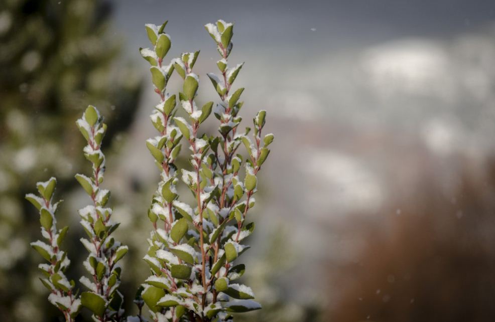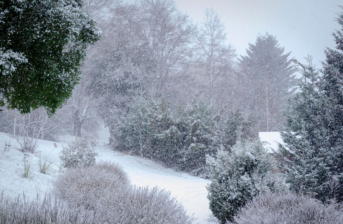 Mientras tanto, a unos 10 km los copos se posaban sobre árboles y plantas.