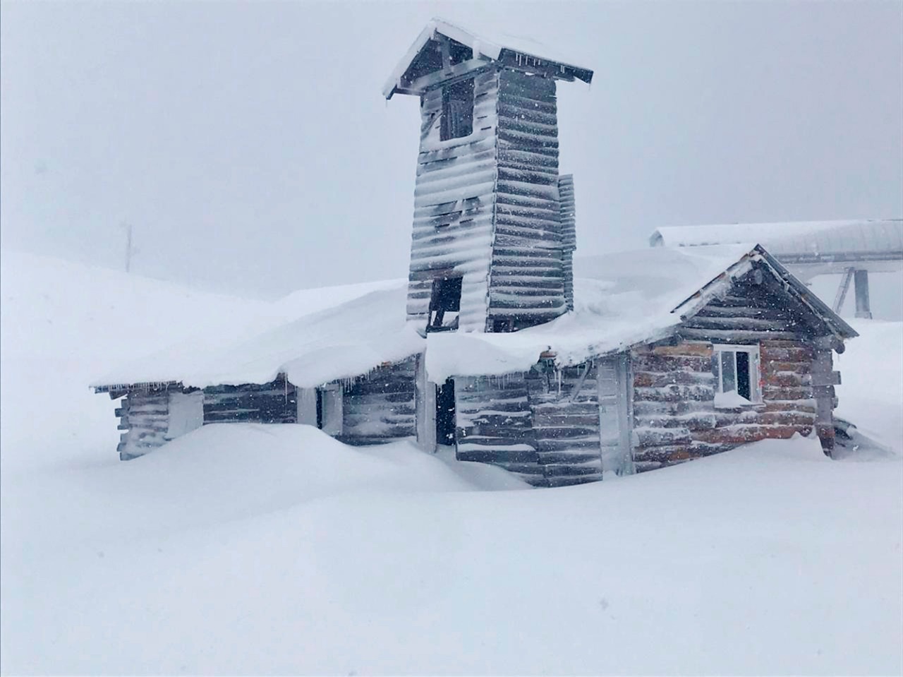 Y una construcción icónica de la montaña estaba cubierta de blanco.