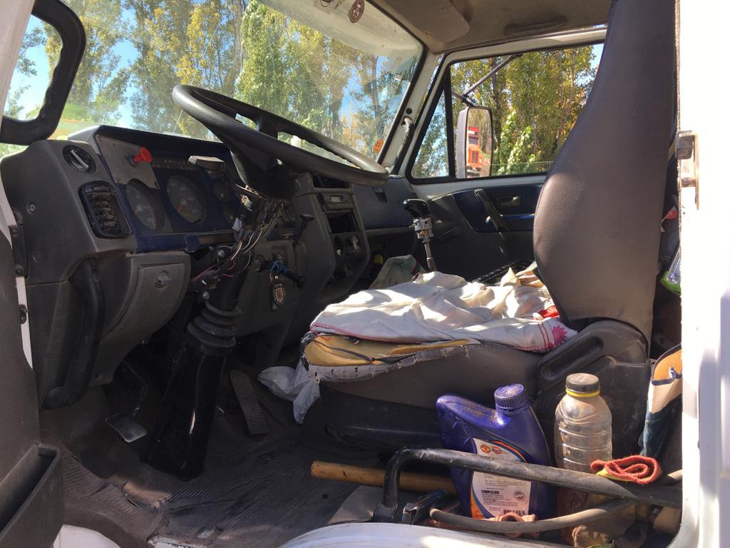 Meza también señaló que cuenta con numerosos desperfectos como los “frenos que no están en condiciones, hacen ruidos y se traban e incluso se debe frenar mediante rebajes de la caja de cambios”. Las cubiertas están muy gastadas, dificultando el agarre en los caminos de tierra por los que transita. No cuenta con cinturones de seguridad y matafuegos, los cables eléctricos salen fuera del tablero