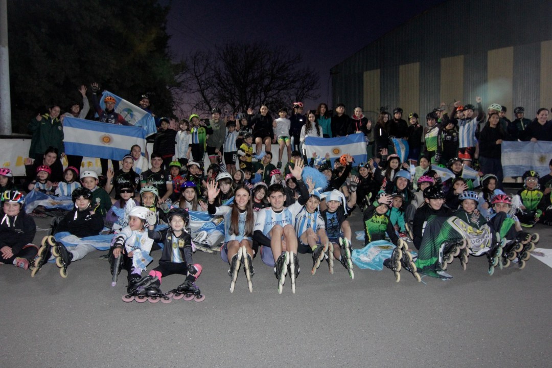 Esta vez, los que pasaron por el puente fueron ocho patinadores del club porque Josefina Reyes Petrelli, Marianella Salomón, Joaquín Matamala, Lucas Almeira, Caetano Martorella y David Toro se van a Rosario para participar en los Juegos JADAR, que se desarrollarán en Rosario. Los seis vestirán la casaca verde de Neuquén.