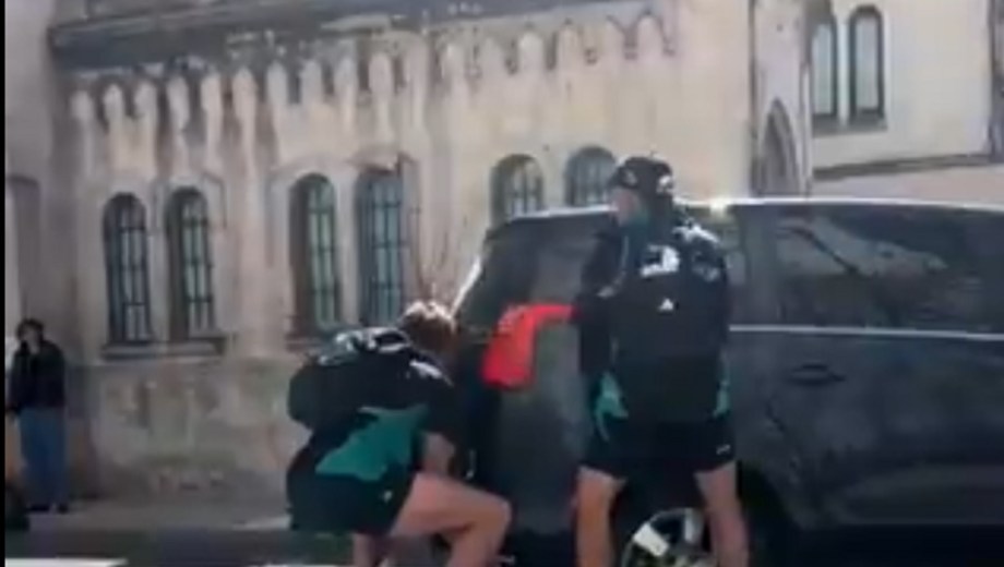 Los All Blacks levantaron un auto para solucionar un incidente de tránsito
