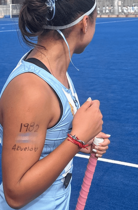 Además, en pleno viaje con la selección, Antonia hizo un homenaje especial. Se pintó la bandera argentina en el brazo, escribió «1982» acompañado de un «abuelo” con un corazón. Fue su forma de recordar a su abuelo Roberto, un excombatiente de Malvinas.