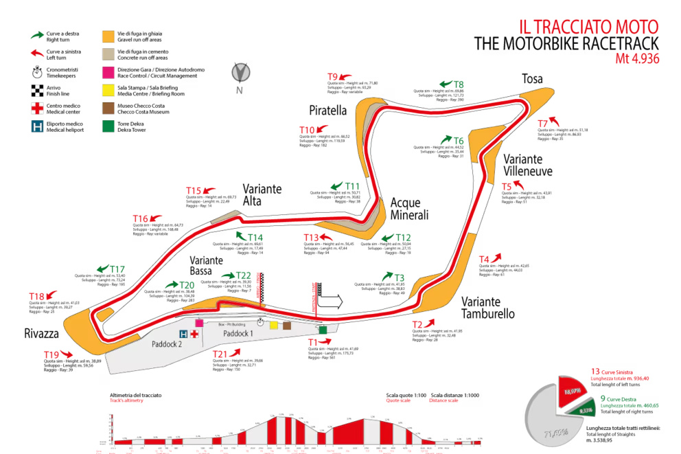 El Autódromo Enzo e Dino Ferrari fue inaugurado en 1953 y que luego del fin de semana trágico del 30 de abril y 1 de mayo de 1994 por las muertes de Roland Ratzenberger y Ayrton Senna, debió ser modificado. Desde 1995 fue sometido a varios cambios para mejorar su seguridad y que esté en condiciones para todas las categorías.