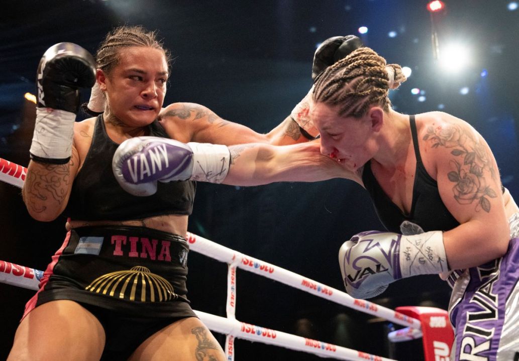 Casi siempre plantada en el centro del ring y con una muy buena preparación física, La Tina marcó diferencias en la primera mitad de la pelea (fueron 10 de 2×1). Su derecha hizo daño, llegó seguido a destino y hubo preocupación, tanto en el rincón local como en el público. La cipoleña fue visitante en serio, pero cumplió con el plan de pelea, pegó y salió, y así sacó diferencias en las tarjetas. Para todos, menos para los jurados.
