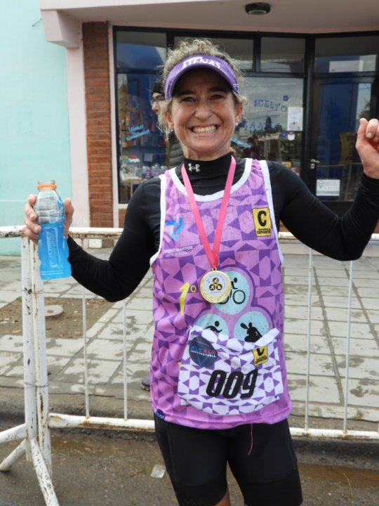Yanina Ferroni consiguió una cómoda victoria en la general de damas en el primer Triatlón de Invierno en Cervantes. Gentileza.