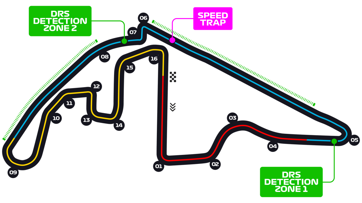 El trazado que albergará la fecha Nº 24 del Campeonato Mundial de 2025 forma parte de la Fórmula 1 desde 2009. Tiene una longitud de 5,281 km, con una distancia total de carrera de 306,183 km. Cuenta con dos zonas de DRS y 16 curvas.