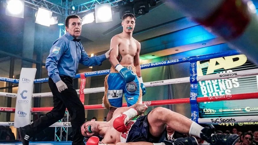 La gran promesa del boxeo argentino alcanzó una nueva victoria, esta vez por nocaut en el cierre del primer asalto de la pelea de fondo.