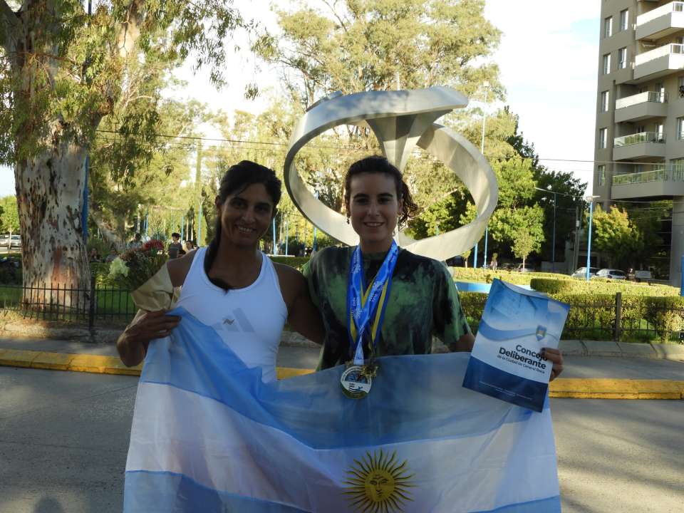 La nadadora roquense Daira Marín llegó a Roca tras su participación en el Mundial de Aguas Heladas de Oulu, Finlandia y tuvo un gran recibimiento de familiares, amigos y su grupo de entrenamiento. Además, recibió una declaración de interés municipal por su destacada participación.