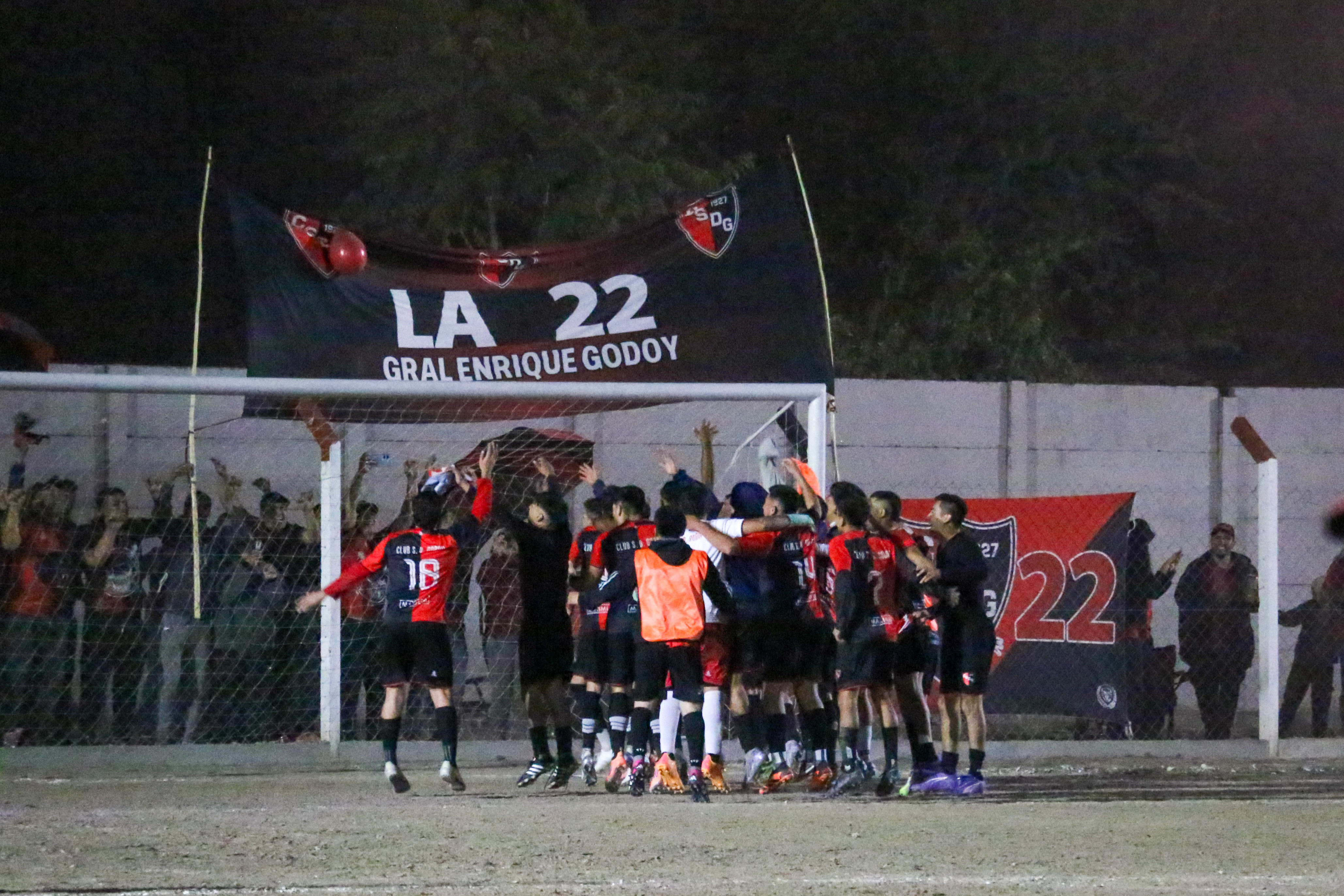 General Enrique Godoy sigue de fiesta. Hace unos días el pueblito valletano celebró sus 103 años y anoche la celebración tuvo continuidad con el retorno de Deportivo Godoy a la Liga Deportiva Confluencia después de 34 años.