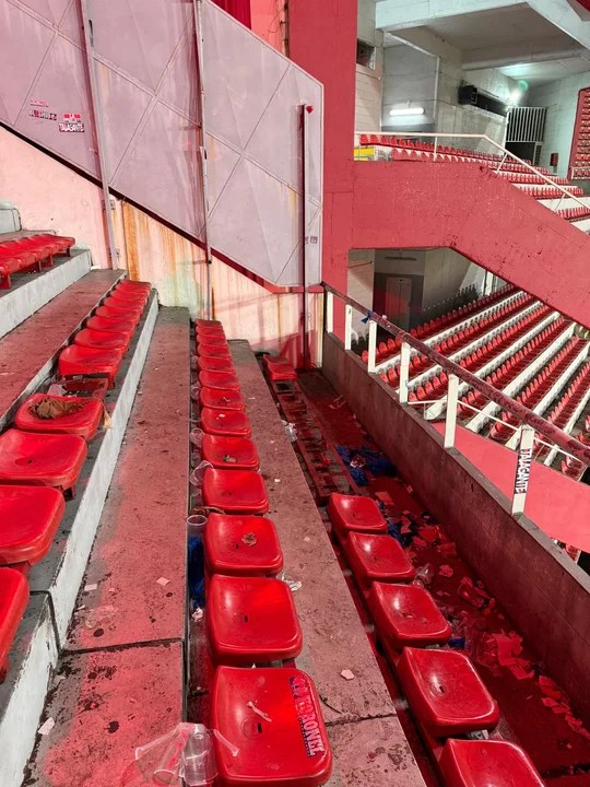 Más allá de la violencia en las tribunas, las imágenes posteriores mostraron un panorama desolador dentro del estadio: baños destrozados, butacas arrancadas, mampostería dañada y pasillos convertidos en escombros.