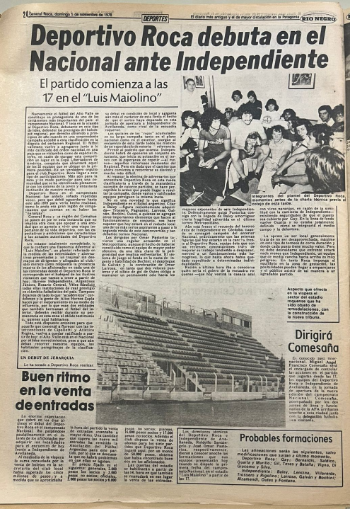 El 5 de noviembre de 1978 se recuerda un hito en la historia del fútbol regional con el debut del Deportivo Roca en la máxima categoría del fútbol nacional. El equipo se enfrentó a un desafiante Independiente de Avellaneda, campeón de la edición previa, en un partido memorable que aún perdura en la memoria de los hinchas.
