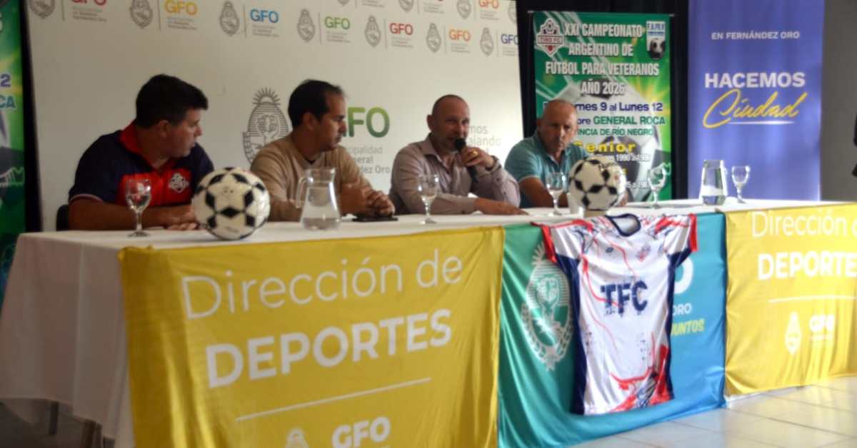 En una conferencia de prensa se presentó la XXI edición del Campeonato Argentino de Fútbol para Veteranos, a jugarse del 9 al 12 de octubre en la provincia de Río Negro; de la misma participaron Néstor Floris, actual presidente de FAFUV (Federación Argentina de Fútbol para Veteranos), Gustavo Amati, intendente de Fernández Oro (Río Negro), Marcelo Corvalán, Secretario General de la Asociación Civil Tiro Fútbol Club de General Roca, organizadores de la presente edición, y Jonathan Almeida, del área de Deportes del Gobierno de Río Negro.