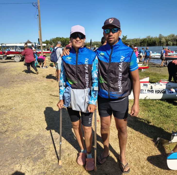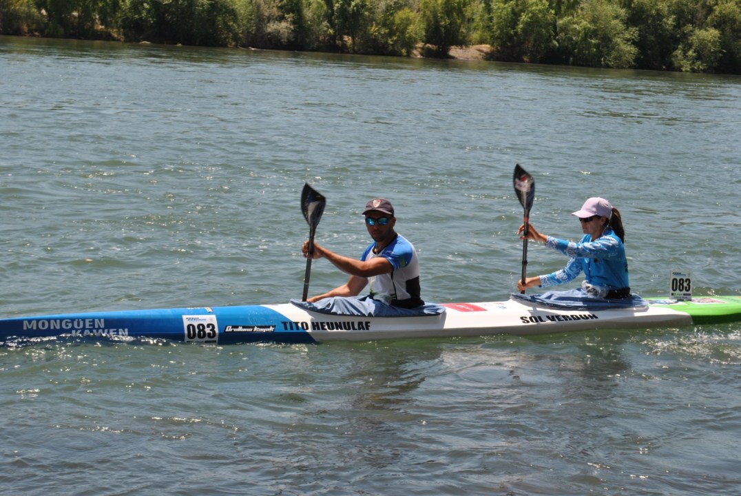 Sol Verdun corre en un travesía mixto junto a Tito Huenulaf, fue operada de cadera hace 14 años y tuvo cáncer en los huesos. Empezó a remar como rehabilitación y hoy el canotaje y la Regata forman parte de su vida.