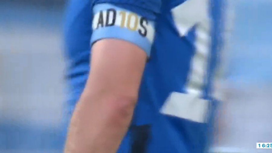 Un amigo con el que jugué al fútbol en la infancia y conoce mis sentimientos por Diego me trajo la cinta desde Nápoles. A los pocos días se anunció el partido con Argentina y decidí usarla…»