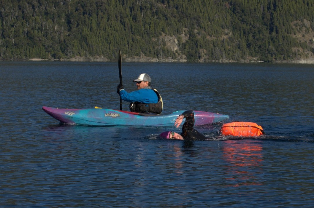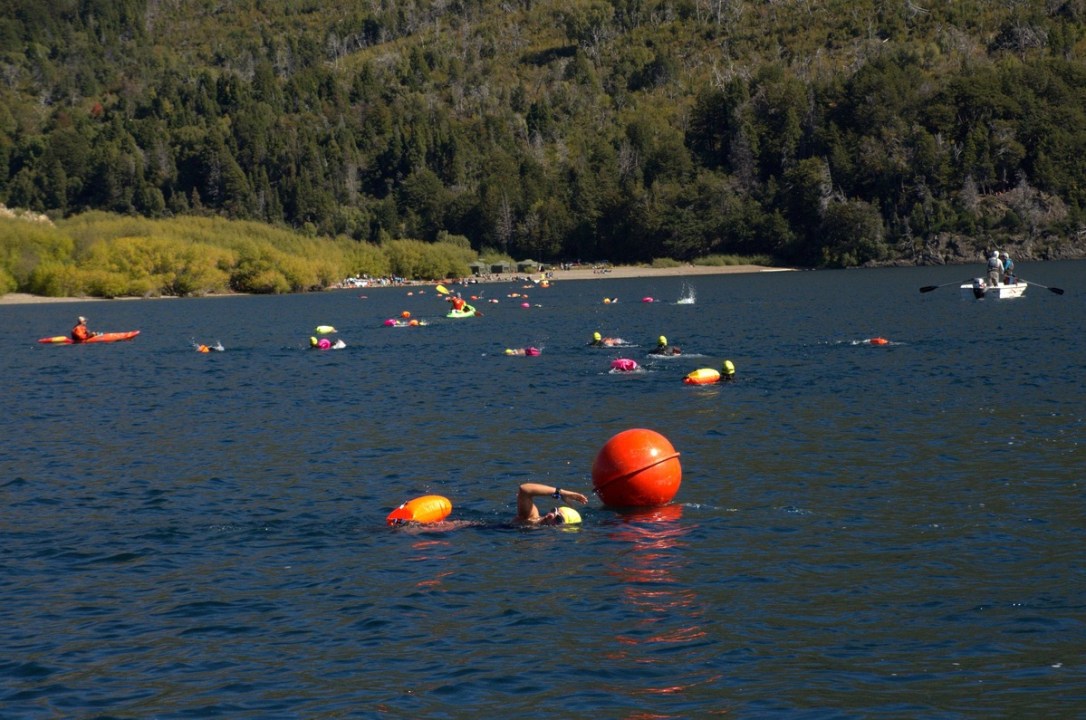 El Desafío Los Alerces fue un éxito: más de 130 nadadores participaron de la prueba en el Lago Futalaufquen