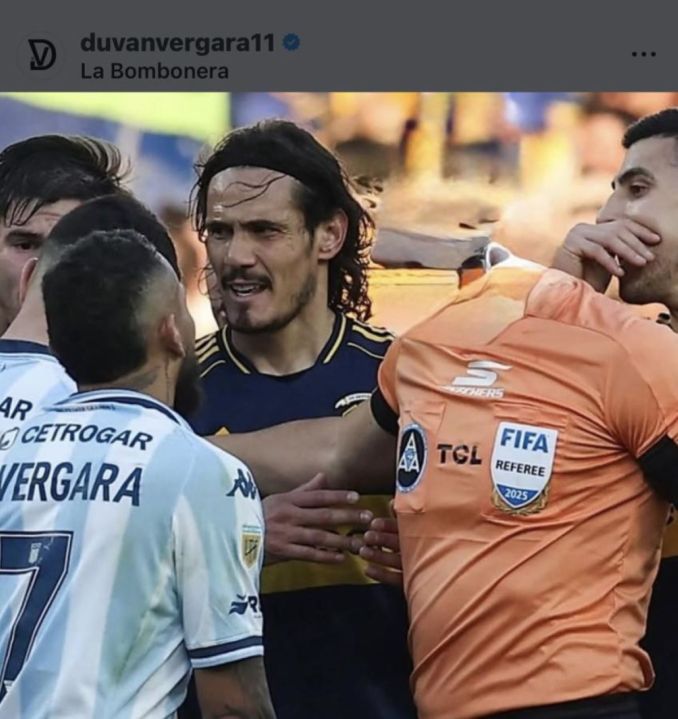 Duvan Vergara publicó una foto de él junto a Edinson Cavani protestándole al árbitro Nicolás Ramírez, pero le borró la cabeza al juez de una manera insólita. La actuación del árbitro estuvo en el centro de la polémica, sobre todo por la falta cobrada previa al gol del empate de Boca en los minutos finales del encuentro disputado en La Bombonera.