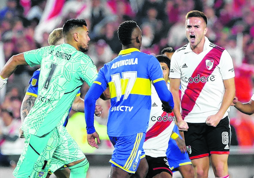 Cinco minutos después de estar en cancha, disputados ya 3’ de tiempo adicionado, Sandez y Pablo Solari serían los protagonistas del inicio de la jugada que cambiaría todo. El árbitro neuquino Darío Herrera vio lo que muchos no, el VAR validó su decisión y no hubo chequeo en el monitor de la supuesta falta del jugador de Boca sobre el de River.