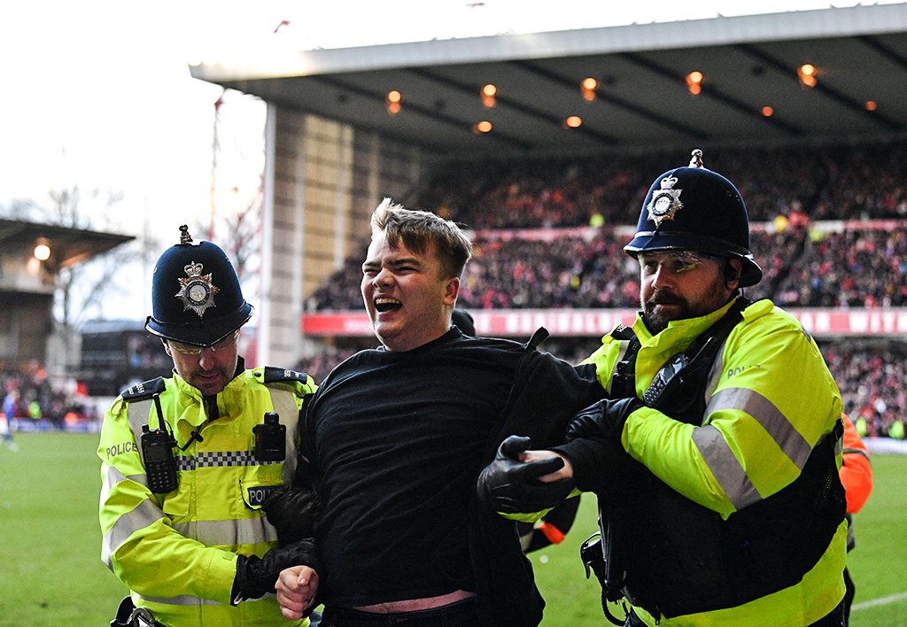 Un fanático del Leicester, que milita en la Premier League, se metió en la cancha para agredir a los futbolistas del Nottingham Forest, que estaban festejando uno de los tantos en la goleada por 4 a 1.