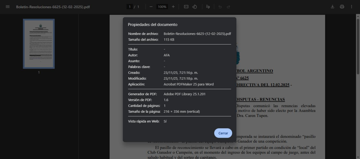 No obstante, el Boletín 6661 citado por la Asociación no se encuentra disponible en la web oficial de la AFA.