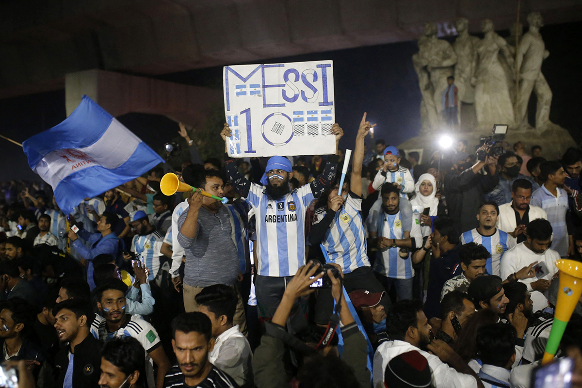 Otro de los países que se vistió de celeste y blanco fue Bangladesh. Durante este mundial, este país asiático demostró su favoritismo por la Selección Argentina y dispusieron grandes pantallas de televisión para reunir a todos los vecinos que quisieran sumarse a ver el partido ante Francia. Cuando se coronó la albiceleste, hubo mucha gente en las calles saltando, bailando y tocando la bocina de las motos.