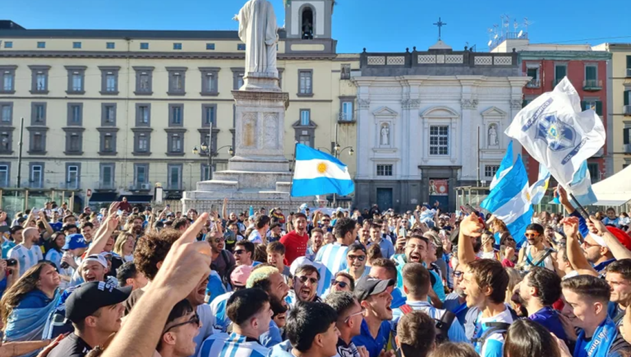 En Nápoles, Italia, donde Diego Armando Maradona pasó los mejores momentos de su carrera futbolística en el Napoli, la gente se manifestó como en un carnaval, marchando por las calles con camisetas, gorros y con los balcones tapizados de banderas argentinas. Además, la emoción y los festejos coparon la Casa Argentina de Roma y una multitud fue a la Plaza Venecia.