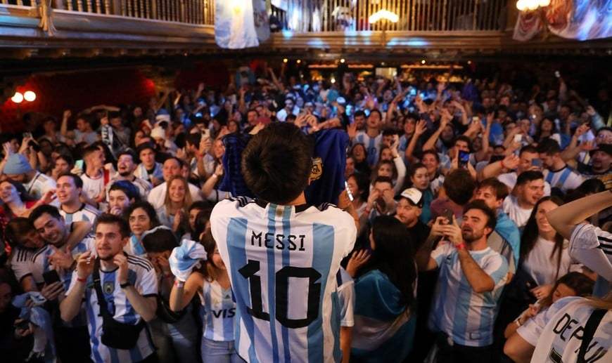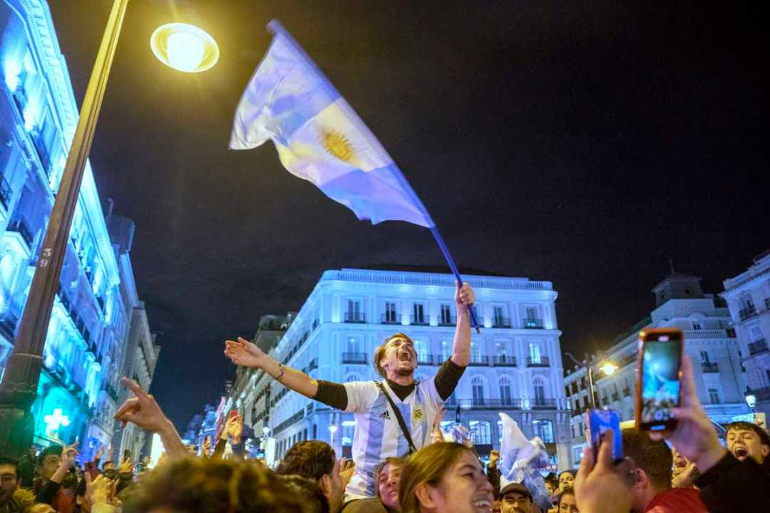 Esto se dio en el marco de que, unos 8.000 hinchas -identificados con camisetas y banderas de la Argentina- se reunieron en el centro de la capital española para celebrar el triunfo ante Francia.