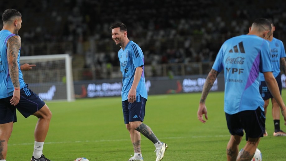 Argentina enfrenta a Emiratos Árabes en Abu Dhabi, en el partido previo al Mundial. Ayer hubo entrenamiento a puertas abiertas y hoy Messi sería titular.