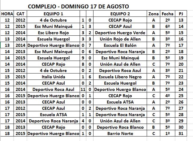 La acción de la primera fecha se dividió entre sábado y domingo en los dos predios del Naranja: el estadio Luis Maiolino y el complejo. Se jugaron 68 partidos.