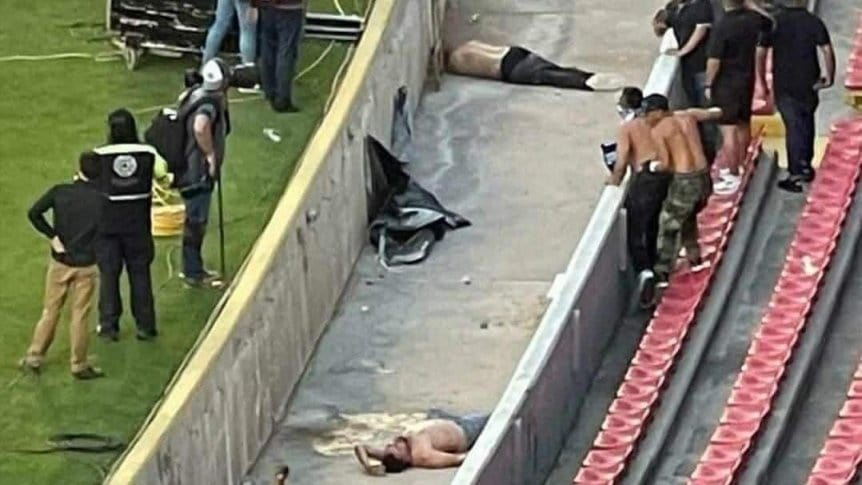 Una jornada negra se vivió anoche en el fútbol de México, donde el partido entre Querétaro y Atlas, por el Clausura, debió ser suspendido por gravísimos incidentes en las tribunas y el campo de juego, a punto tal que las peleas dejaron cuerpos tendidos por varios rincones del estadio, aunque no hubo información acerca de la cantidad de heridos y si hubo muertos, aunque trascendió que habría varias víctimas fatales.