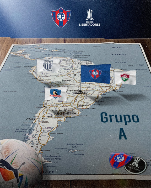 “Cerro Porteño está en el Grupo A de la Copa Conmebol Libertadores 2024 junto con Fluminense, Alianza Lima y Colo Colo. ¡Vamos con todo, Ciclón!”, publicó el club paraguayo con una foto en la que se ven los escudos de cada rival en un mapa y ubicados en su país de origen.