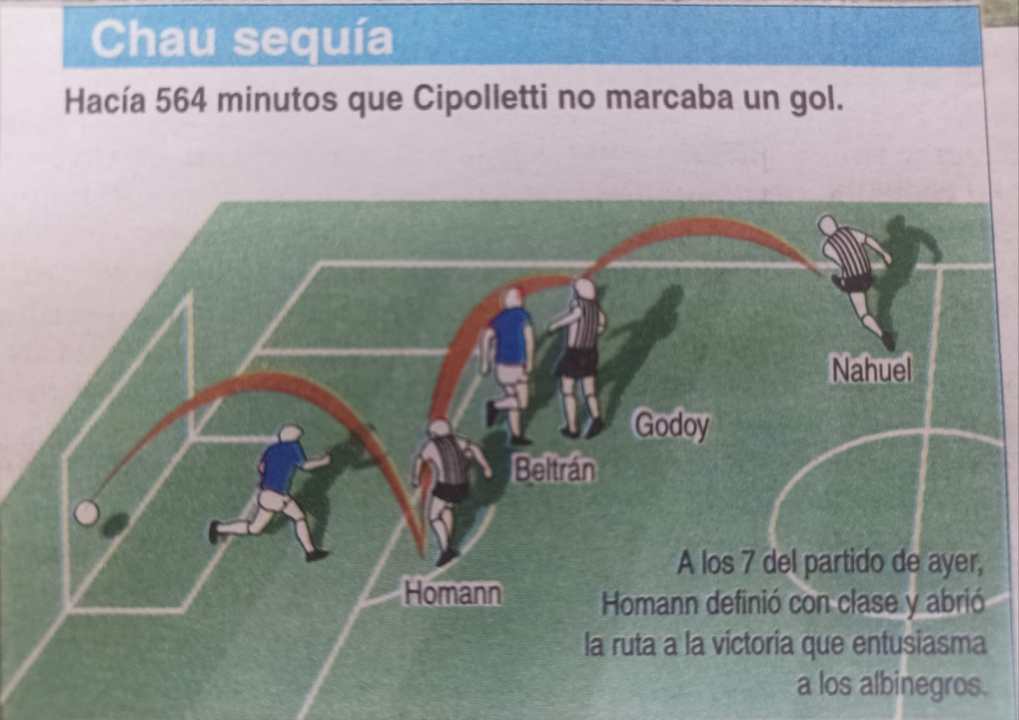 Ese año, en la temporada 1999/2000, el Albinegro no metió goles en los últimos 6 partidos del torneo. Empató 2 a 2 con Aldosivi y Maximiliano Amorone convirtió a los 33′ del segundo tiempo. De ahí en adelante, no hizo ninguno contra Atlético Tucumán (0-0), Juventud Antoniana (0-2), Brown de Arrecifes (0-0), Godoy Cruz (0-3), Villa Mitre (0-0) y San Martin de Mendoza (0-3).