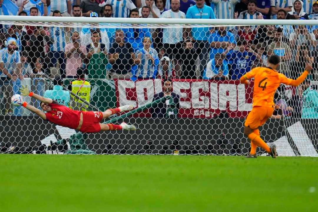 Dibu Martínez después de ser decisivo en la definición por penales con Países Bajos tuvo poco trabajo en la semifinal con Croacia. Gentileza.