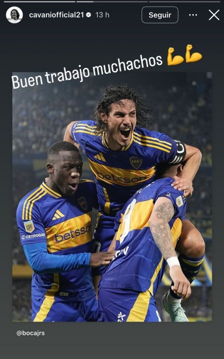 «Buen trabajo, muchachos«, escribió el capitán de Boca en su cuenta de Instagram, en la que compartió una foto del festejo junto a Luis Advíncula y Carlos Palacios. Sin embargo, no se refirió al penal que falló durante el partido.
