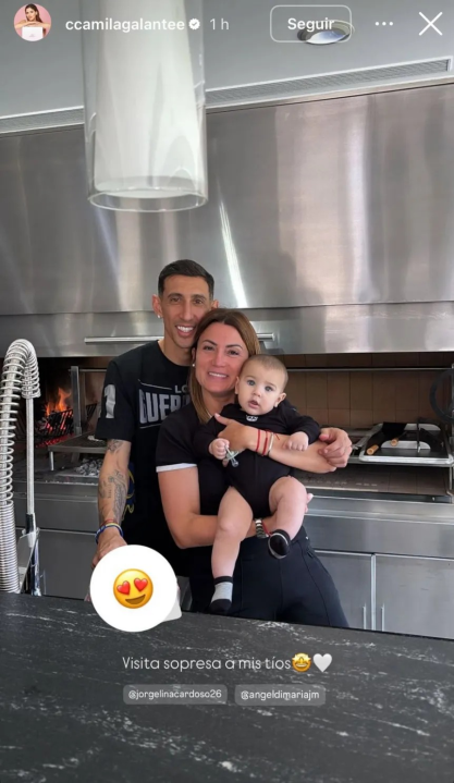 Mediante historias de Instagram, la esposa del mediocampista de Boca compartió algunas fotos del encuentro. En la primera aparece Paredes conduciendo por la autopista; luego una de Ángel y Jorgelina con el pequeño Lautaro, de apenas seis meses.