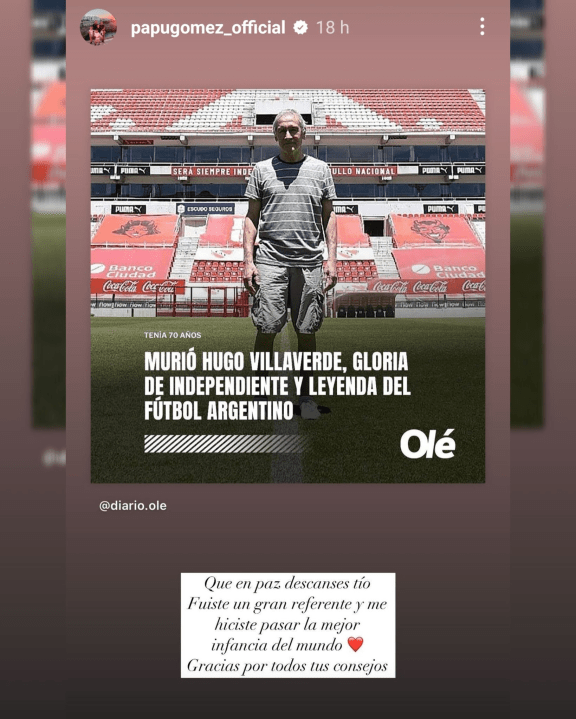 Este domingo murió a sus 70 años el exjugador y gloria de Independiente, Hugo Villaverde. El multicampeón con el Rojo era el tío de Alejandro Papu Gómez y ambos compartieron distintos momentos durante la infancia del campeón del mundo en Qatar 2022. Por esta razón, el volante compartió un emotivo mensaje para despedir al zaguero.