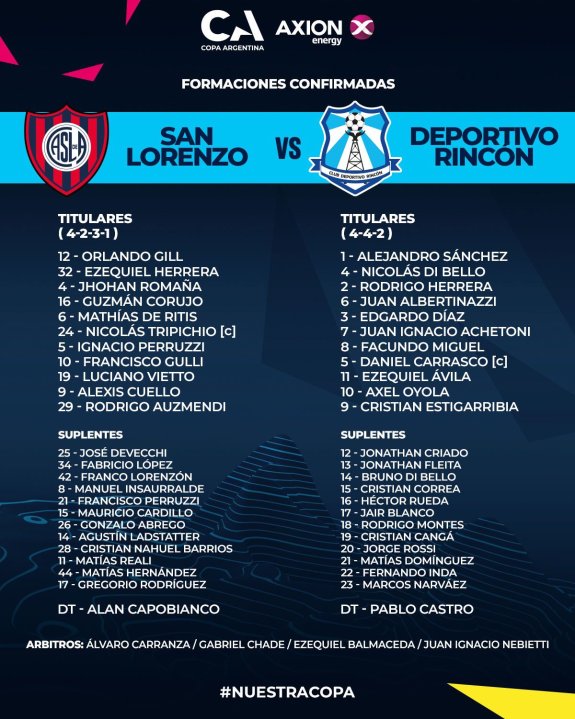 En vivo: Deportivo Rincón pierde con San Lorenzo por los 32avos de final de la Copa Argentina